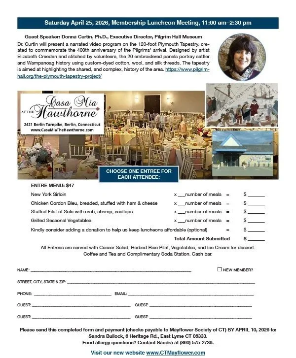 Renew your membership with the Mayflower Society of Connecticut today to continue celebrating and preserving our shared Pilgrim heritage.